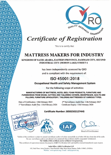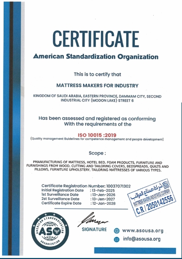 مصنع مراتب وأسرة فندقية متخصص في التوريد بالجملة لأصحاب الفنادق والمعارض بخبرة متوارثة منذ عام 1975م